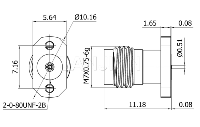 商品描述:2.4mm straight jack PCB connector,50GHz