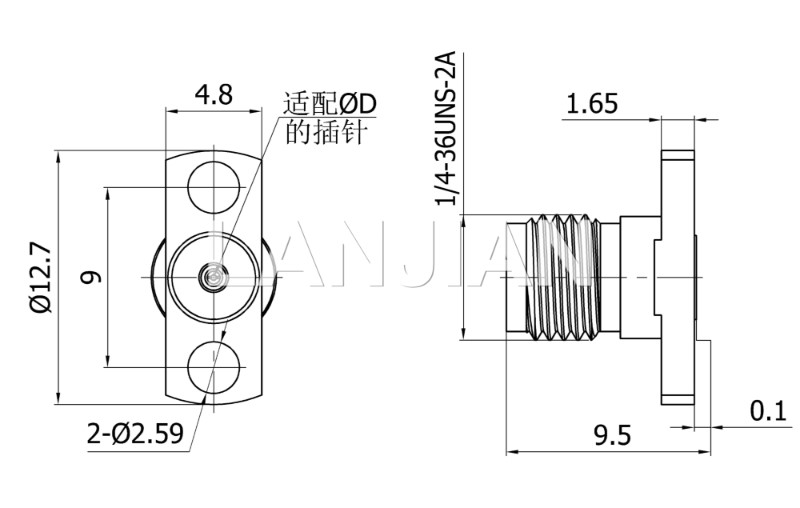 商品描述:2.92mm straight jack connector,40GHz